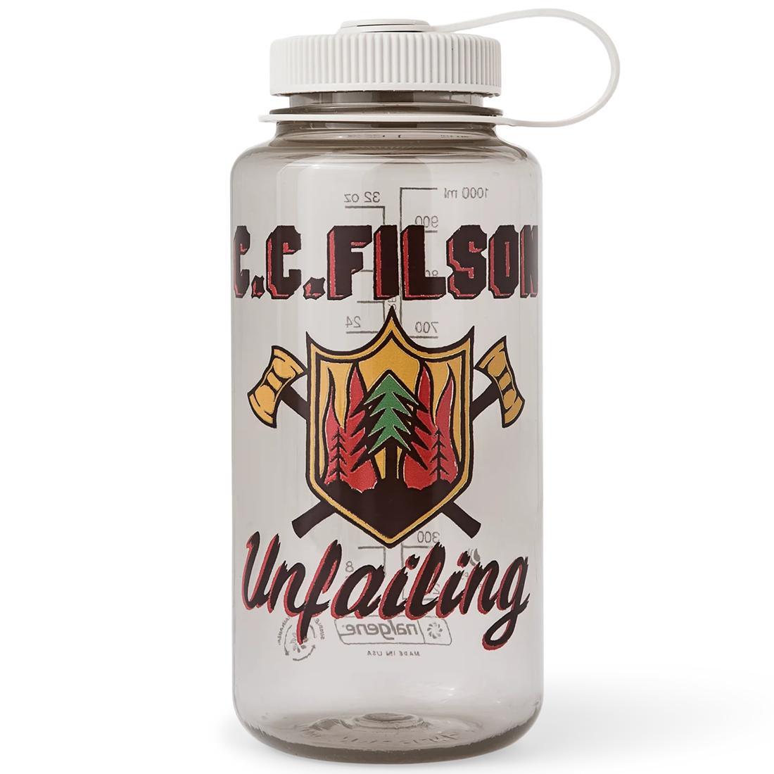 A staple for anyone outdoors, this 32-oz. Nalgene Bottle is shatterproof, dishwasher-safe, and suitable for hot and cold beverages. Made with completely BPA-free plastic that doesn't leach harmful chemicals into your water. Features a wide mouth that's compatible with many water filters and a loop-top design to keep the lid tethered. Limited-edition Filson graphics.