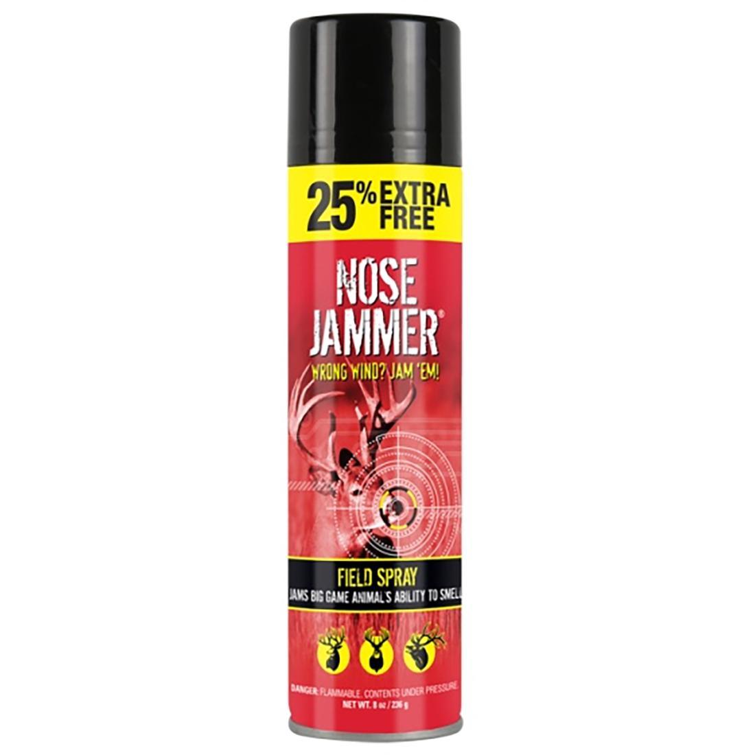 Nose Jammer creates a cloud around you which jams big game's ability to detect and track human odor. Nose Jammer should be sprayed on clothes, boots, tree stands, blinds and brush. When the wind swirls, critters olfactory gets jammed and they stay unalarmed. Nose Jammer Field spray is most effective when used in conjunction with the rest of the Nose Jammer line of products. Works on all critters with a nose!