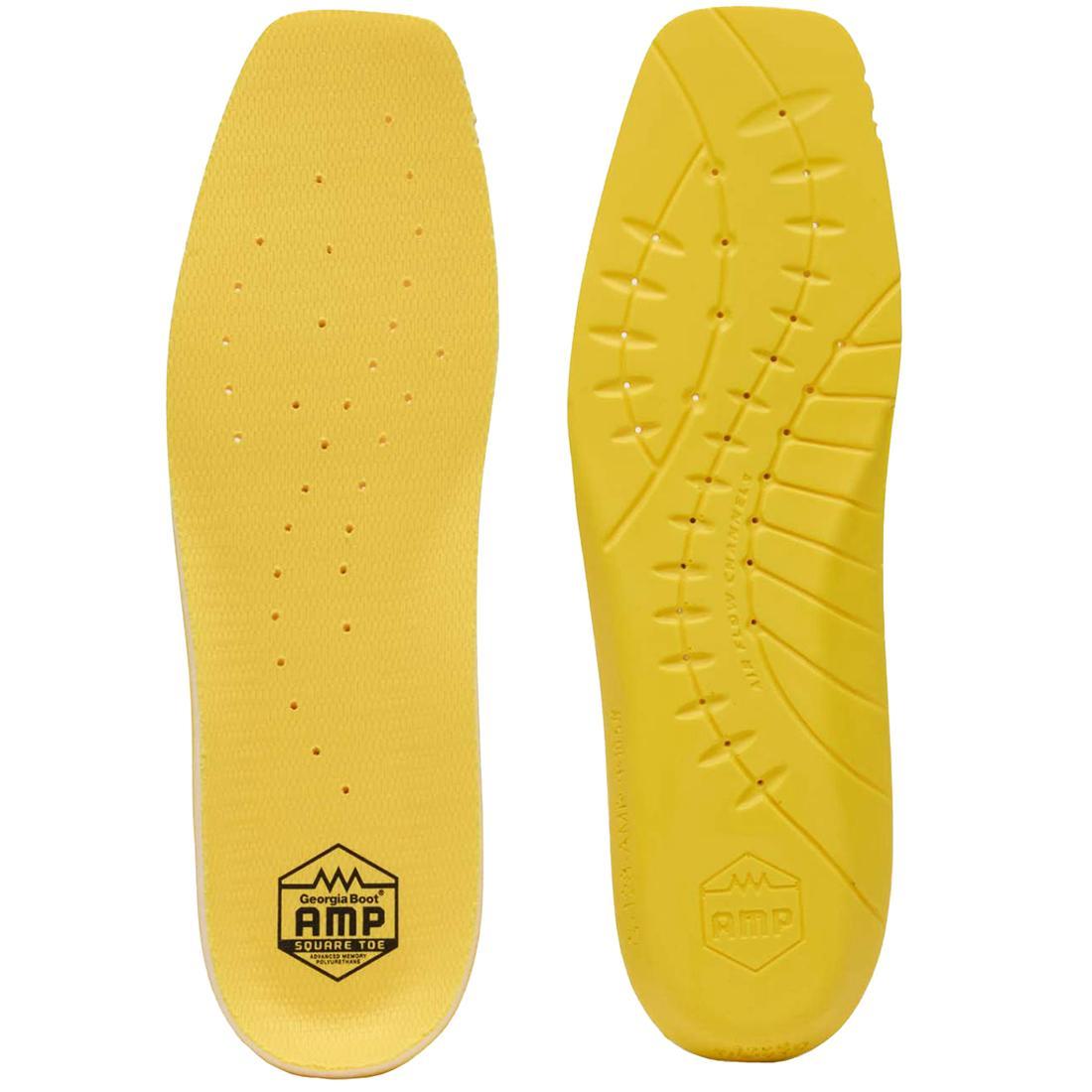 The ultra-comfortable Georgia Boot® AMP™ (Advance Memory Polyurethane) Insole is now available in a square toe. These boot insoles have a layer of memory foam that forms to the shape of your foot for custom comfort. The memory foam extends the length of the insoles so it cushions your entire foot. Under the memory foam, the Georgia Boot AMP insoles have a polyurethane layer for maximum cushioning as you stand or step. The heel cups provide comfort and support to your heel area. On the underside of the comfortable insoles are airflow channels that push air to your feet as you walk, helping to cool your feet. An antimicrobial mesh top cover helps to prevent odor-causing bacteria. Get these comfortable boot insoles from Georgia Boot for your square-toe western boots and get going! This insole should be compatible with most square- toe shoes and boots.