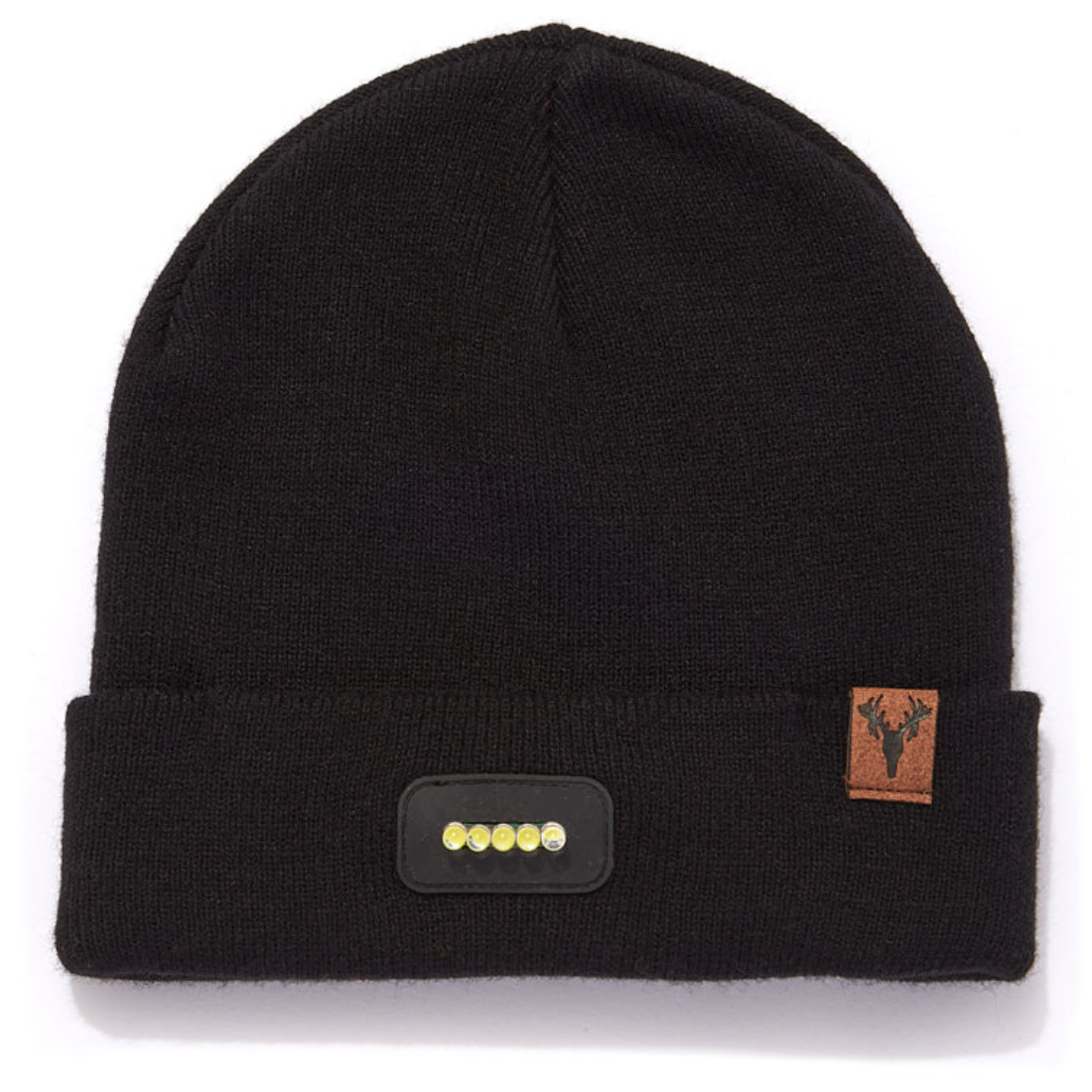 The "Bolt" lighted knit cuff cap brings light where you need it most. The 5-bulb lighted LED mechanism with integrated 'switch' power pack is placed underneath the front cap. This allows for 12 hours of continuous light for all your outdoor activities.
