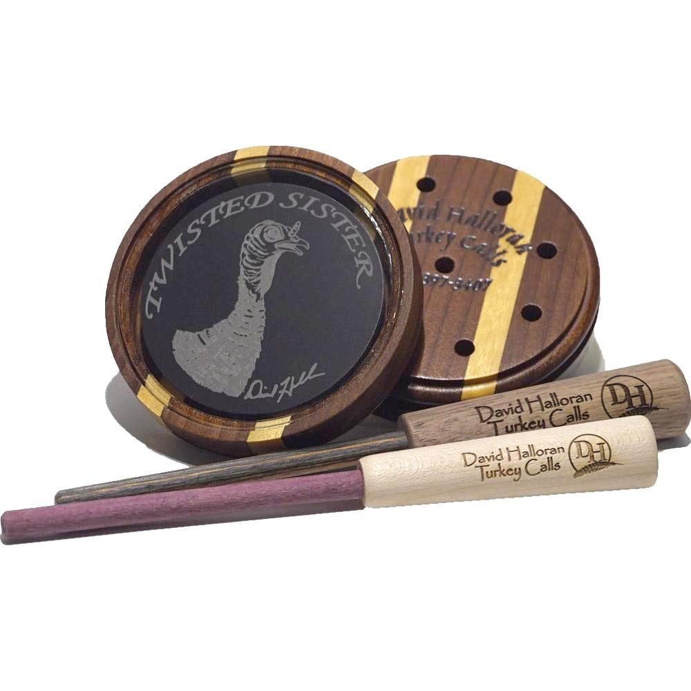The Crystal Mistress has a sister, the Twisted Sister. This raspy yelping, sharp cutting call is definitely deserving of its name. The laminate pot combines the stability of thermal treated poplar with the tonal quality of yellow heart. When matched with the crystal striking surface over a slate soundboard, this call becomes a devastating tool in the turkey woods. Each call comes with a dymondwood striker and a purple heart striker.