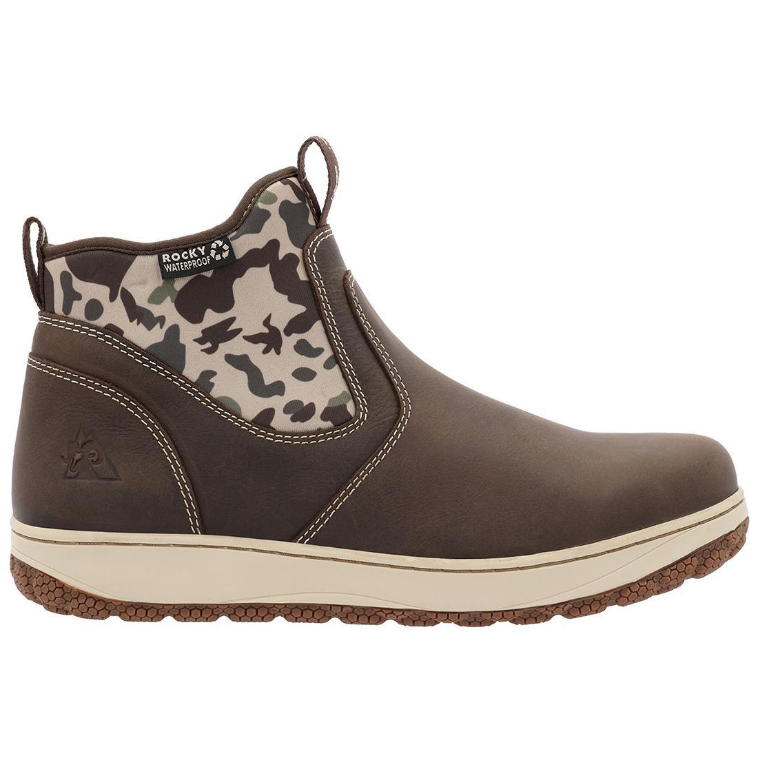 The renowned Dry-Strike collection expands further with this newest addition to the line-up. Crafted from waterproof full-grain leather and featuring a 2mm neoprene half sock, this 6" pull-on shoe boasts a signature non-marking oil- and slip-resisting Dry-Strike outsole, ensuring exceptional traction whether you're navigating the marina or strolling through town. Complemented by light and flexible cement construction and Rocky® Air-Port Lite sponge PU footbed with memory foam, this shoe guarantees enduring comfort. Versatile and rugged, it sets a new standard for the evolution of casual footwear.