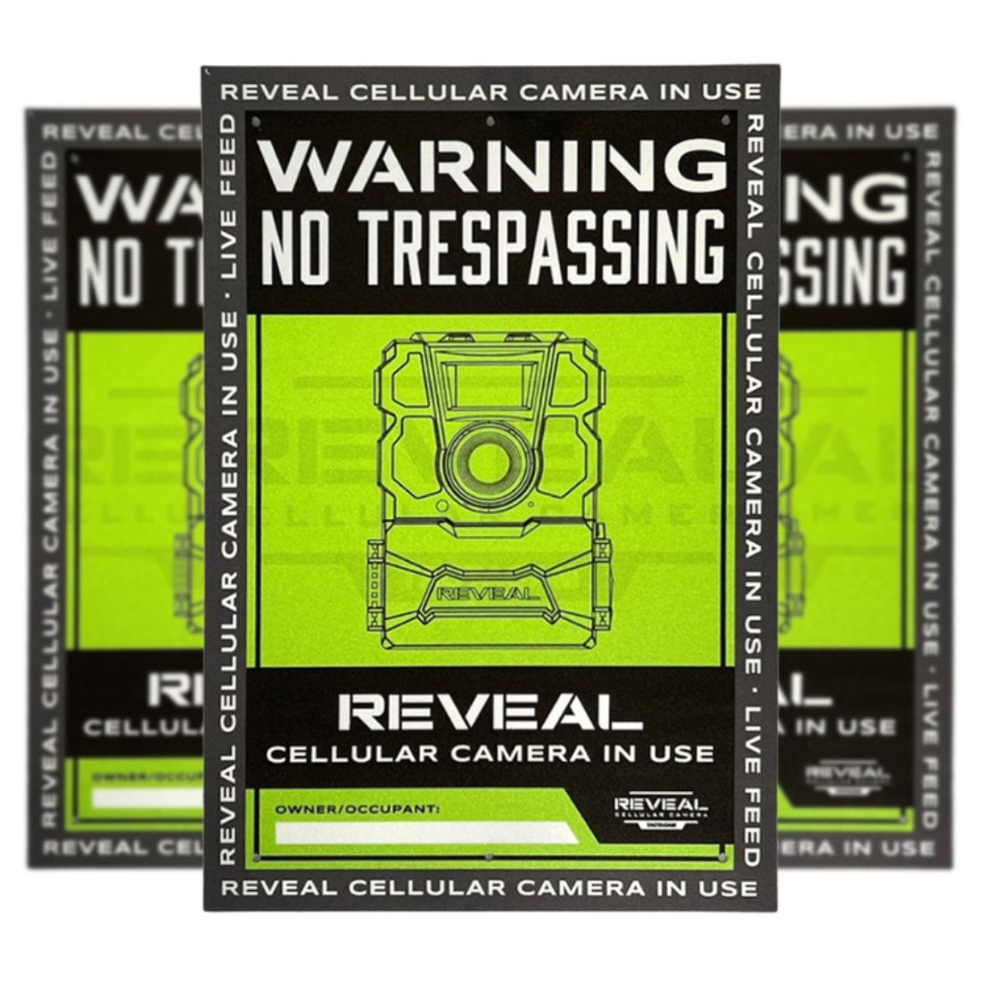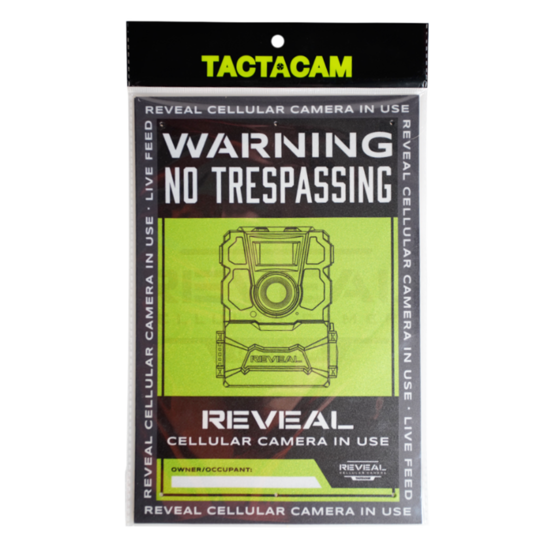 Tactacam's REVEAL No-Trespassing Signs inform potential intruders of active REVEAL cellular cameras in the area. Protect your property with high visibility signage. 3 available per package.