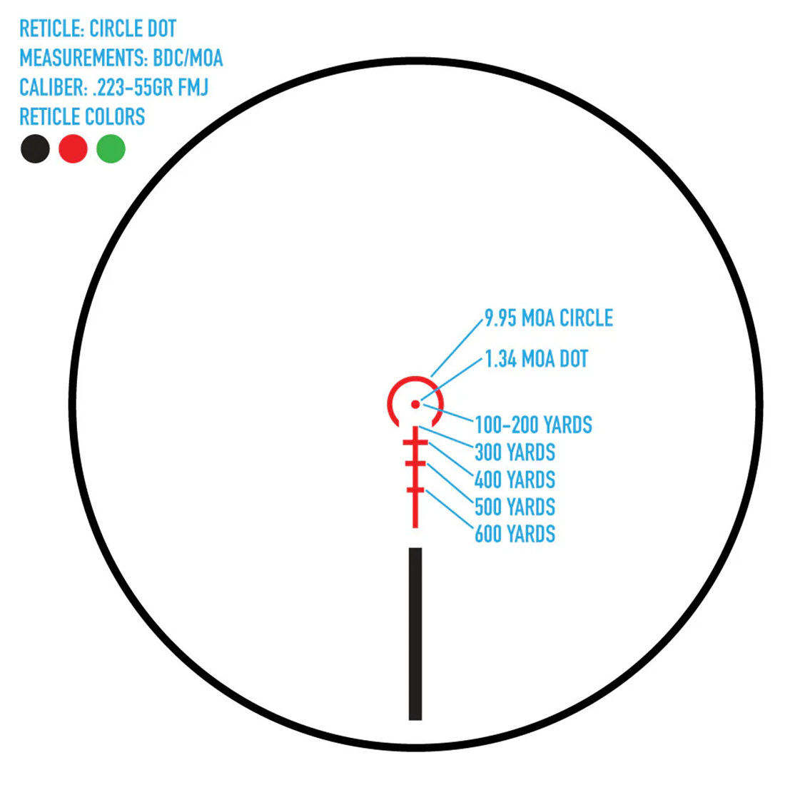 For a powerful, versatile riflescope, look no further than the Firefield RapidStrike 1-6x24! This optic’s magnification range is ideal for hog and varmint hunting or 3-gun competition. The RapidStrike 1-6x features a fully multi-coated lens and a red, green or black Circle Dot reticle with 5 brightness settings to accommodate your environment and target preferences.