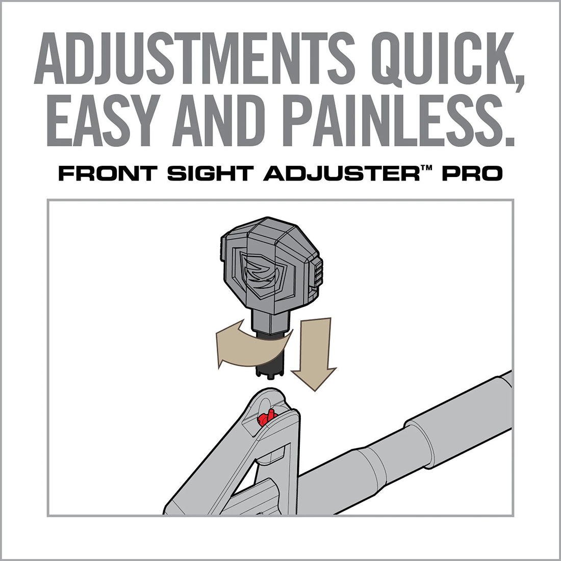 The Front Sight Adjuster Pro, a versatile tool designed for precise front sight adjustments. This innovative accessory fits both 5-pin and 4-pin front sights, offering compatibility with AR sights from leading brands like H&K;, Troy and Magpul®. Its longer design ensures a better fit, while the removable tube accommodates A1 and A2 front sights. The compact case provides storage, protection and improved grip. Crafted from precision-machined tool steel, the Front Sight Adjuster Pro is built to last. Upgrade your front sight adjustment experience with this reliable and convenient tool.