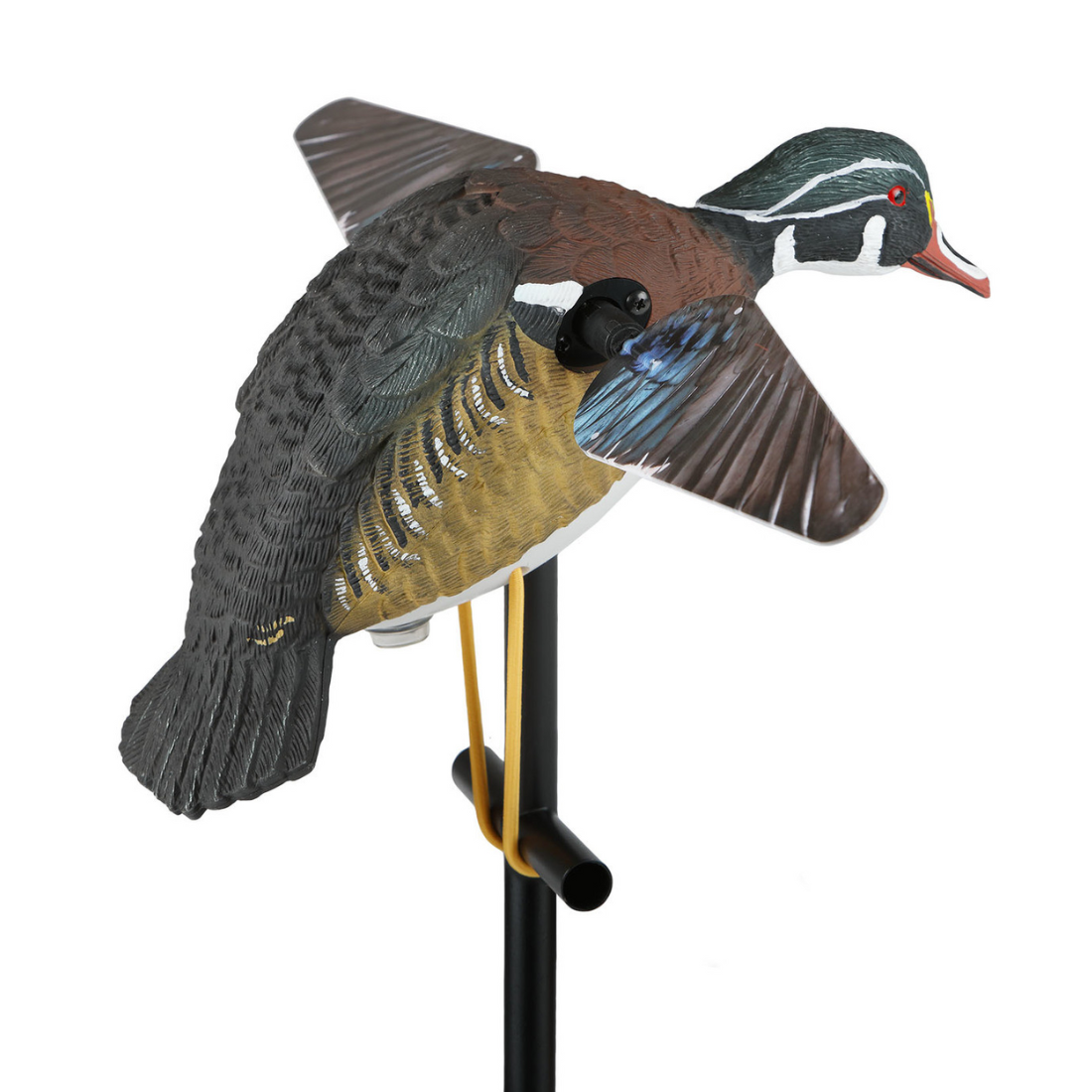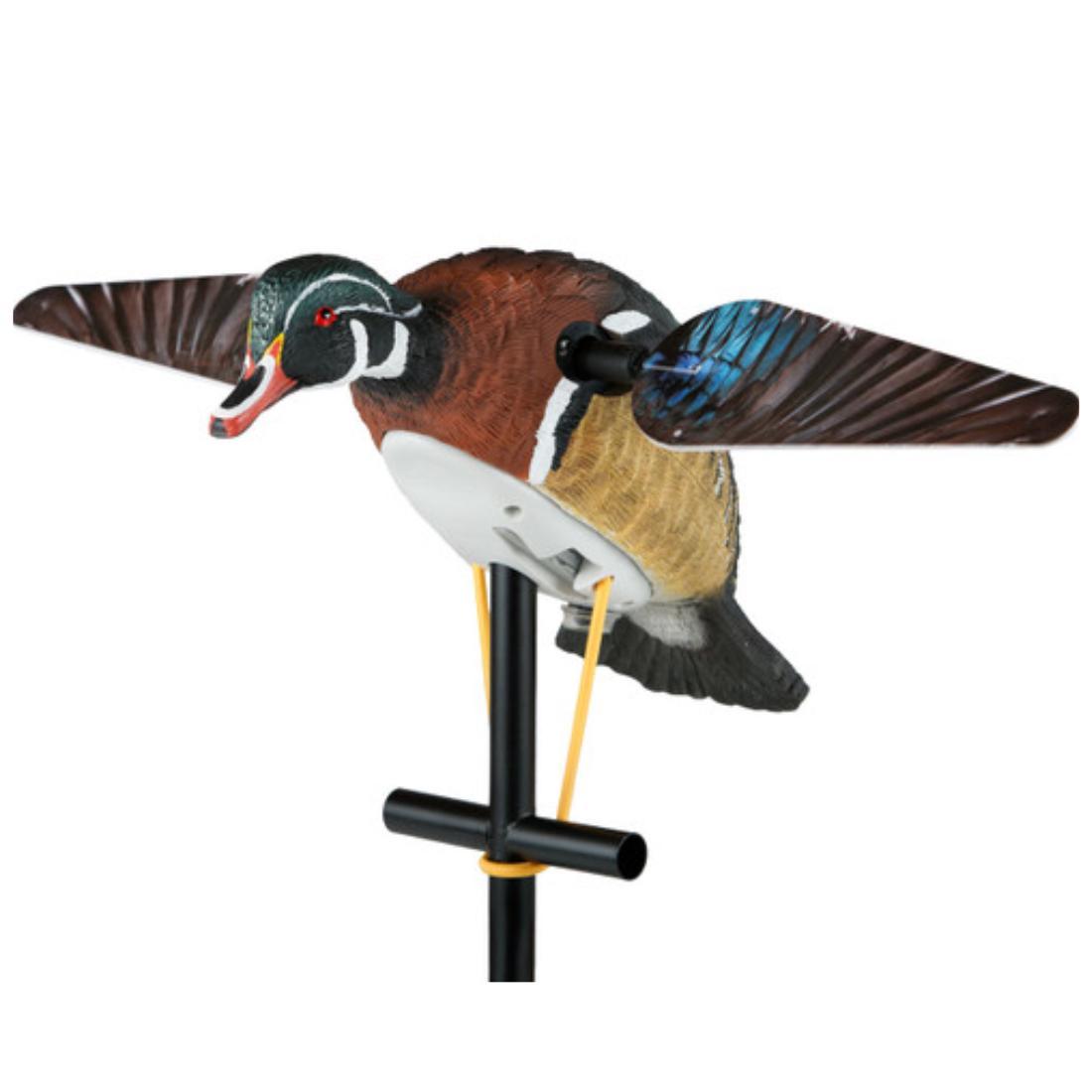 The Lucky Woody HD is a full sized spinning wing decoy with exceptional detail. Made of durable EVA plastic that resists cracking and holds paint adhesion for even the toughest waterfowler. Our chest mount with bungee makes this decoy hassle free and mobile. The Woody HD includes a 3 piece 42" stake and magnetic wings with life-like print. Decoy runs on 4 AA batteries (not included) and will run for 12-14 hours. HD remote ready - sold separately.
