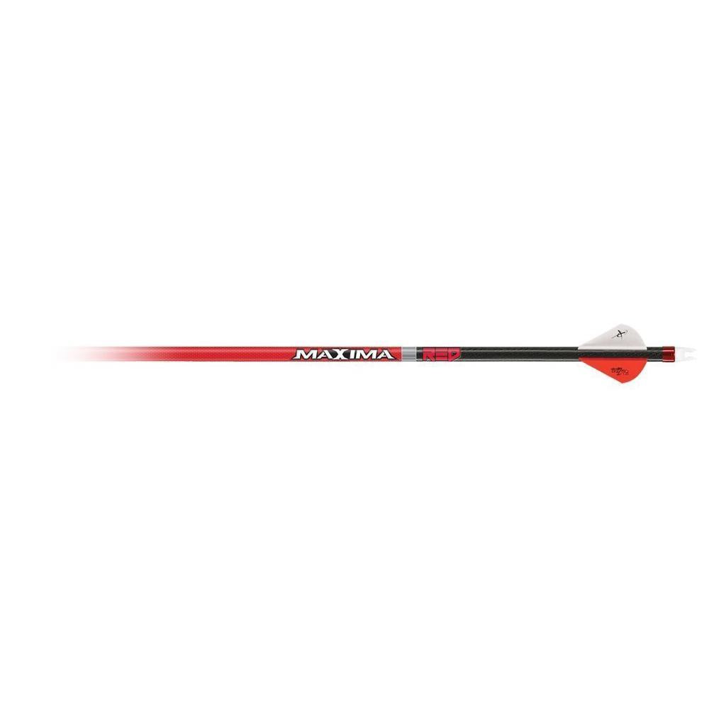 The Maxima RED is a breakthrough in controlling Dynamic Spine. The hi-tech carbon design has stiffer ends to contain the arrow's flex to what is called the "RED ZONE". The RED ZONE is the section of the arrow shaft engineered to contain Dynamic Spine and make a broadhead shoot more consistently. Containing arrow flex to the RED ZONE provides a new level of hunting performance because broadheads exaggerate the effect of arrow flexing in flight and act like "wings" on the front of the arrow. By reducing arrow flex in the front of the shaft, the Maxima RED makes broadheads shoot tighter groups and provides overall improved hunting performance. Both expandable and fixed blade broadheads exaggerate the effect of this increased flexing because the shape of the broadhead act like "wings" on the front of the arrow. The stiffer front end of the arrow shaft repositions arrow flex to the RED ZONE and reduces oscillation on the front end to make broadheads shoot more consistently. This results in tighter groups with broadheads and makes the Maxima RED the Ultimate Hunting Arrow.