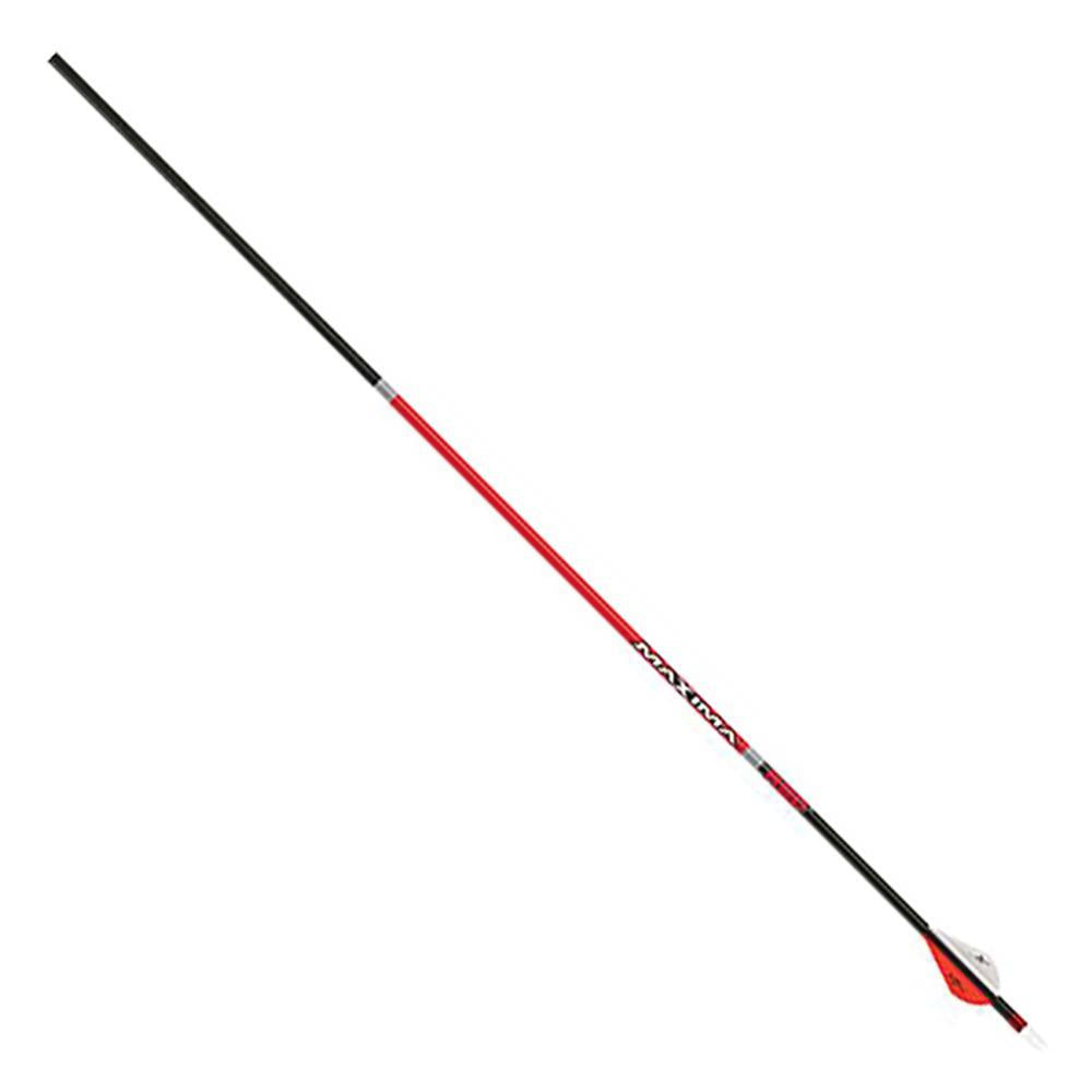 The Maxima RED is a breakthrough in controlling Dynamic Spine. The hi-tech carbon design has stiffer ends to contain the arrow's flex to what is called the "RED ZONE". The RED ZONE is the section of the arrow shaft engineered to contain Dynamic Spine and make a broadhead shoot more consistently. Containing arrow flex to the RED ZONE provides a new level of hunting performance because broadheads exaggerate the effect of arrow flexing in flight and act like "wings" on the front of the arrow. By reducing arrow flex in the front of the shaft, the Maxima RED makes broadheads shoot tighter groups and provides overall improved hunting performance. Both expandable and fixed blade broadheads exaggerate the effect of this increased flexing because the shape of the broadhead act like "wings" on the front of the arrow. The stiffer front end of the arrow shaft repositions arrow flex to the RED ZONE and reduces oscillation on the front end to make broadheads shoot more consistently. This results in tighter groups with broadheads and makes the Maxima RED the Ultimate Hunting Arrow.