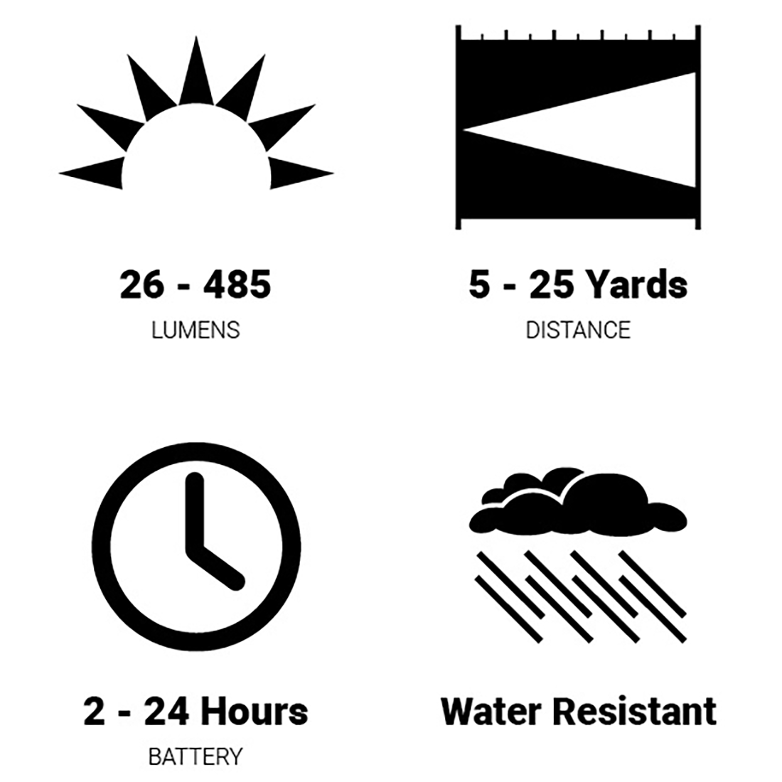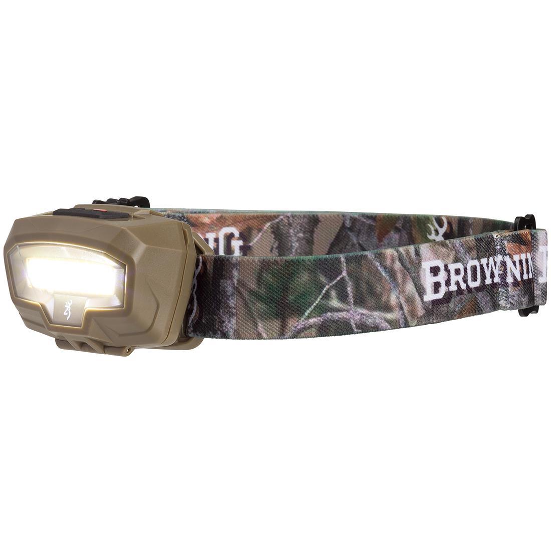 Wide Angle Technology enabled headlamp. Max 485 lumen output with multiple intensity and flashing output modes in white and red light. Runs on three standard AAA batteries (included).