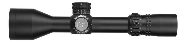 The Nightforce NX8 2.5-20x50mm F1 is the answer to an "all-purpose" riflescope. The magnification range is exceptionally versatile for hunters, designated marksmen, and competitors. At a mere 12 inches in length, this riflescope features Nightforce ruggedness, DigIllum, and ZeroStop elevation turret. At high magnification, the crisp, clear images and 110 MOA/ 32 MRAD of elevation travel enable shooters to easily engage targets at all distances.