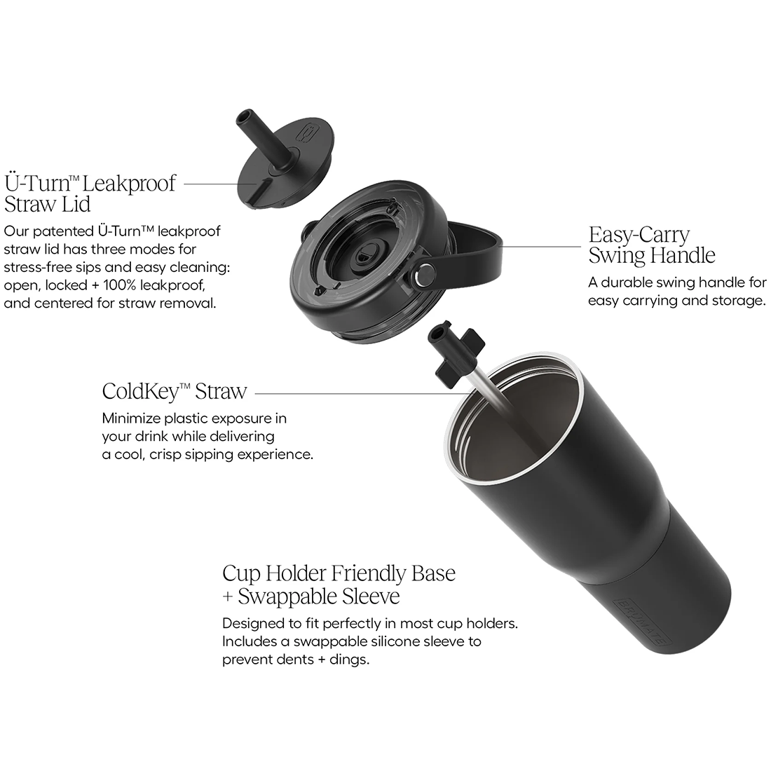 Made for life on the go, the Resa 35oz combines a 100% leakproof locking lid, built-in silicone swing handle, and a ColdKey™ stainless steel straw for a spill-free sip every time. With a swappable sleeve to protect against dents and dings, and temp retention that keeps your drinks cold for 24+ hours, it’s the ultimate travel companion — plus, most finishes are dishwasher safe for easy cleaning.