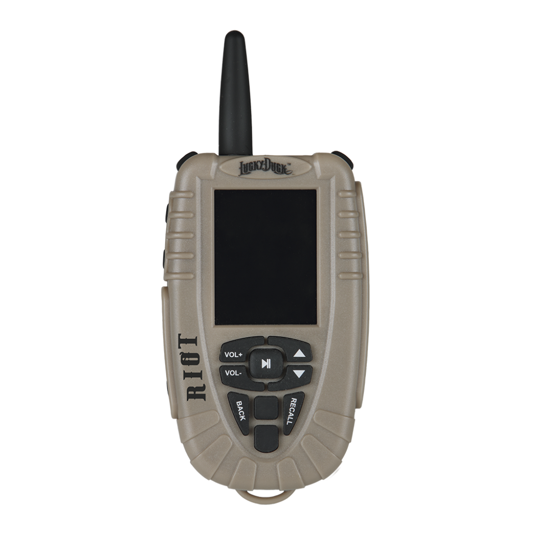 Simple, compact design makes The Riot extremely portable without sacrificing sound quality. The remote and decoy store conveniently in the caller making transportation that much easier. The Riot includes 50 preloaded sounds (capacity of 2,000), a motorized decoy, and remote control with a range of 300+ feet. All sounds are live animal recordings complied by The Verminator, Rick Paillet, and have been used to win the World Coyote Calling Contest. The Riot runs on 10 AA batteries, and remote runs on 3 AA batteries (not included).