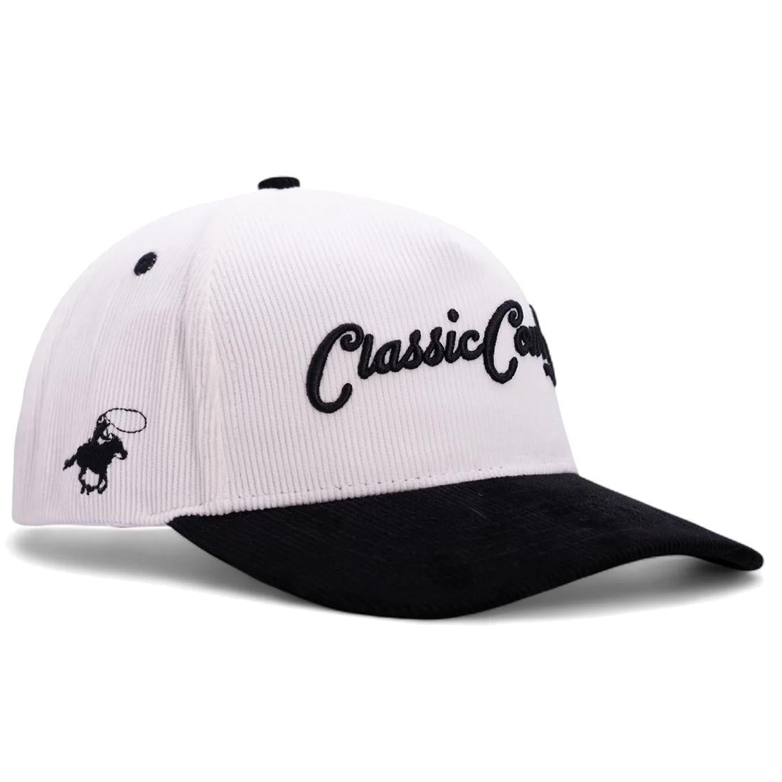 Experience the classic look of a black tie event with The Formal's corduroy material, featuring a white crown and black bill for a timeless touch!