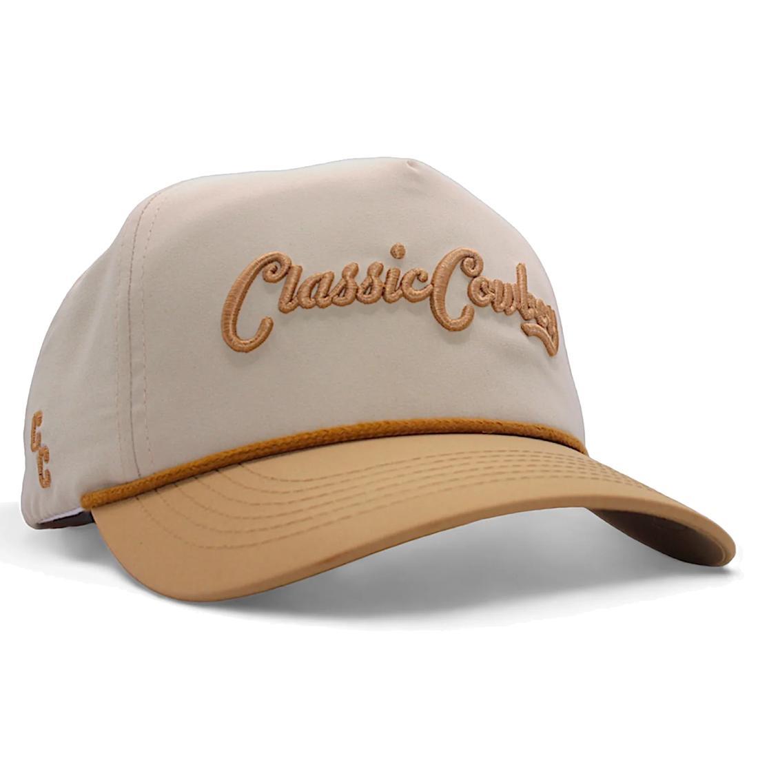 The Lambert features an off-white crown with tan embroidery, bill, rope, and adjustable snapback.