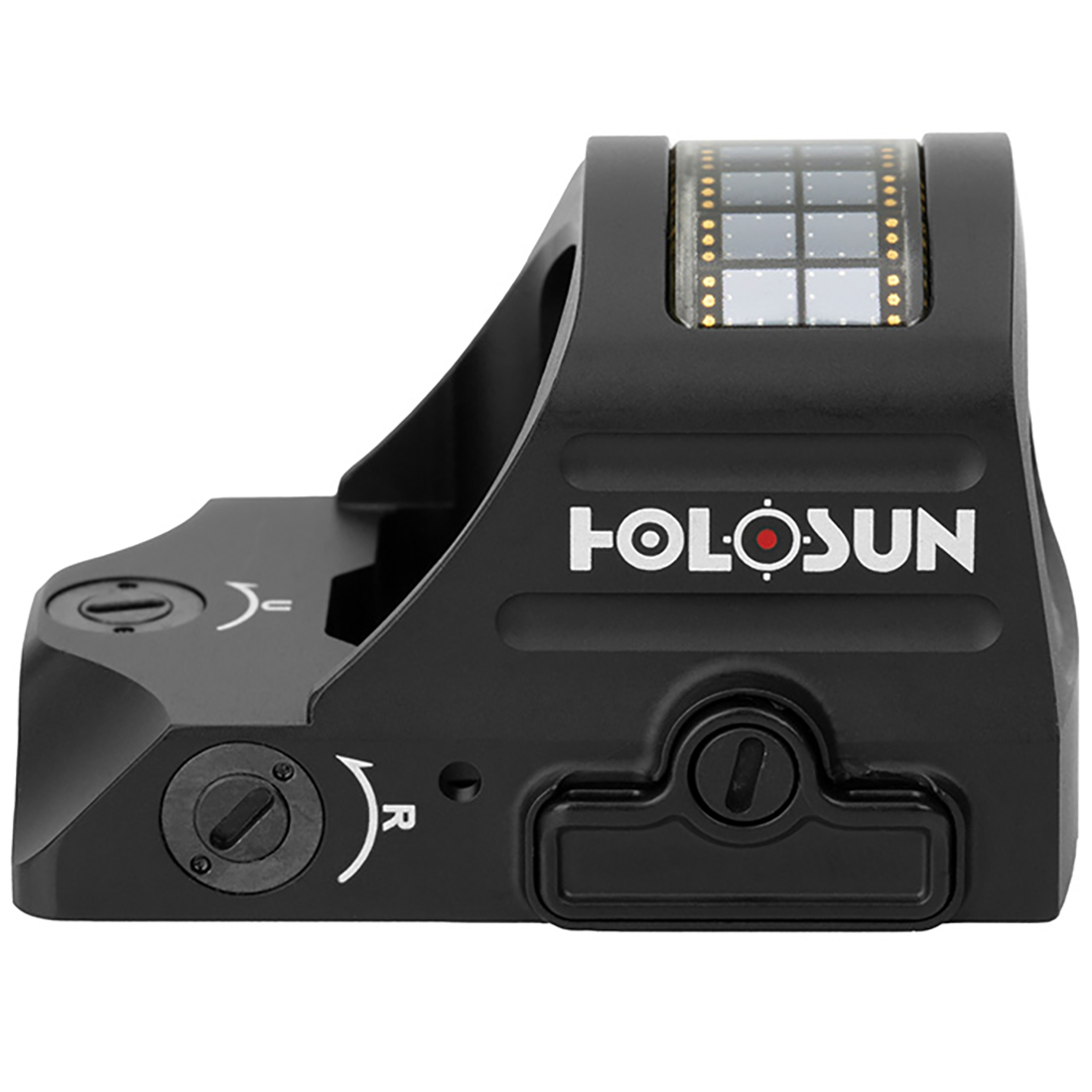 Additional features include Holosun’s Red Super LED with up to 50k hour battery life, Solar Failsafe, Multi-Reticle System, and Shake Awake. The durable housing is made from 7075 Aluminum, uses an industry standard footprint, and houses the 1632 battery in a side-mounted tray for easy replacement when needed.