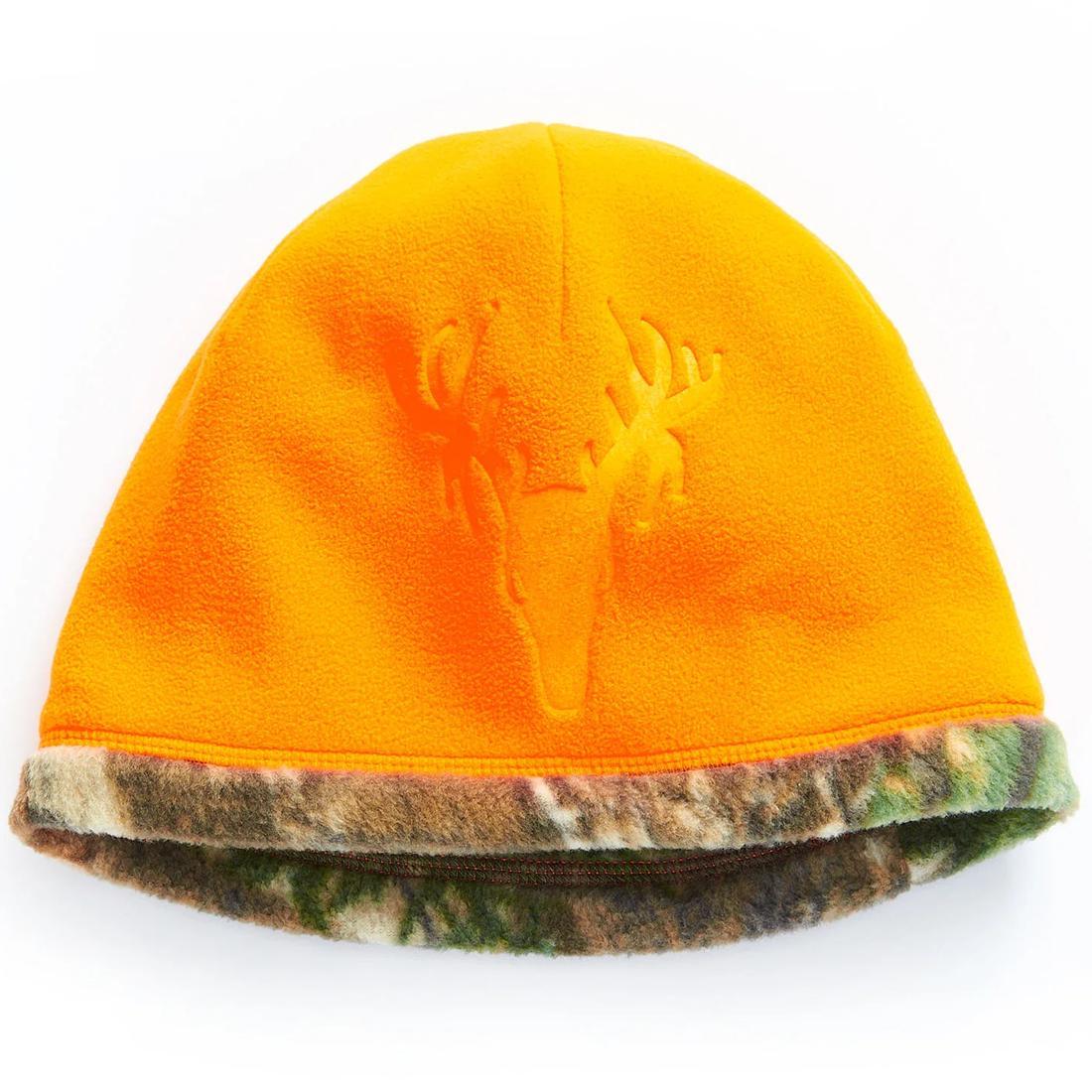 The fleece beanie with debossed "Hot Shot Deer" logo is reversible to ultrasoft camo fleece with roll-over trim and tonal flatlock stitching.
